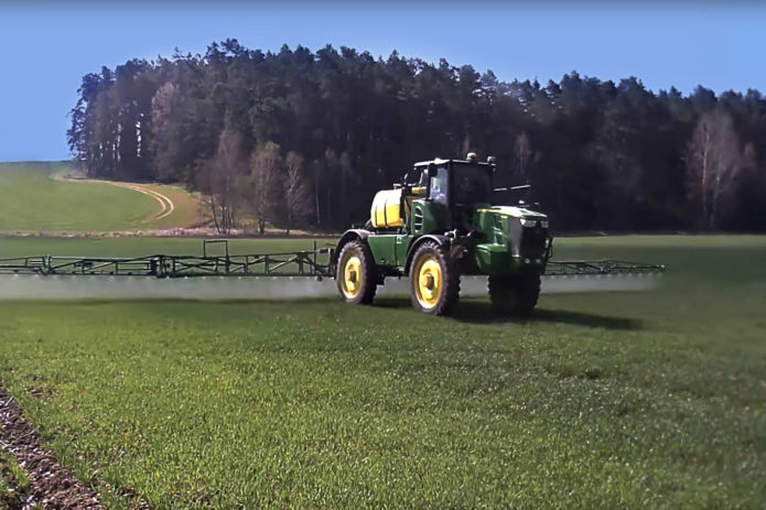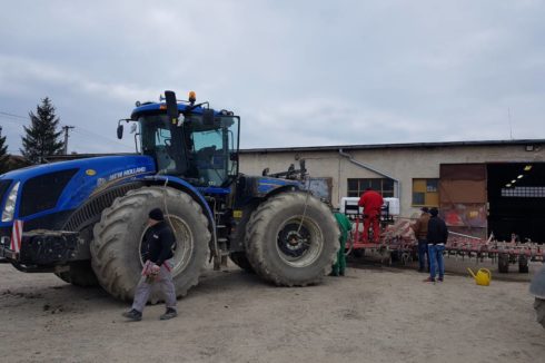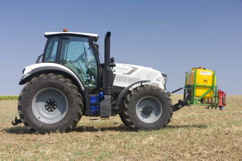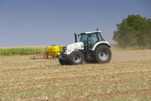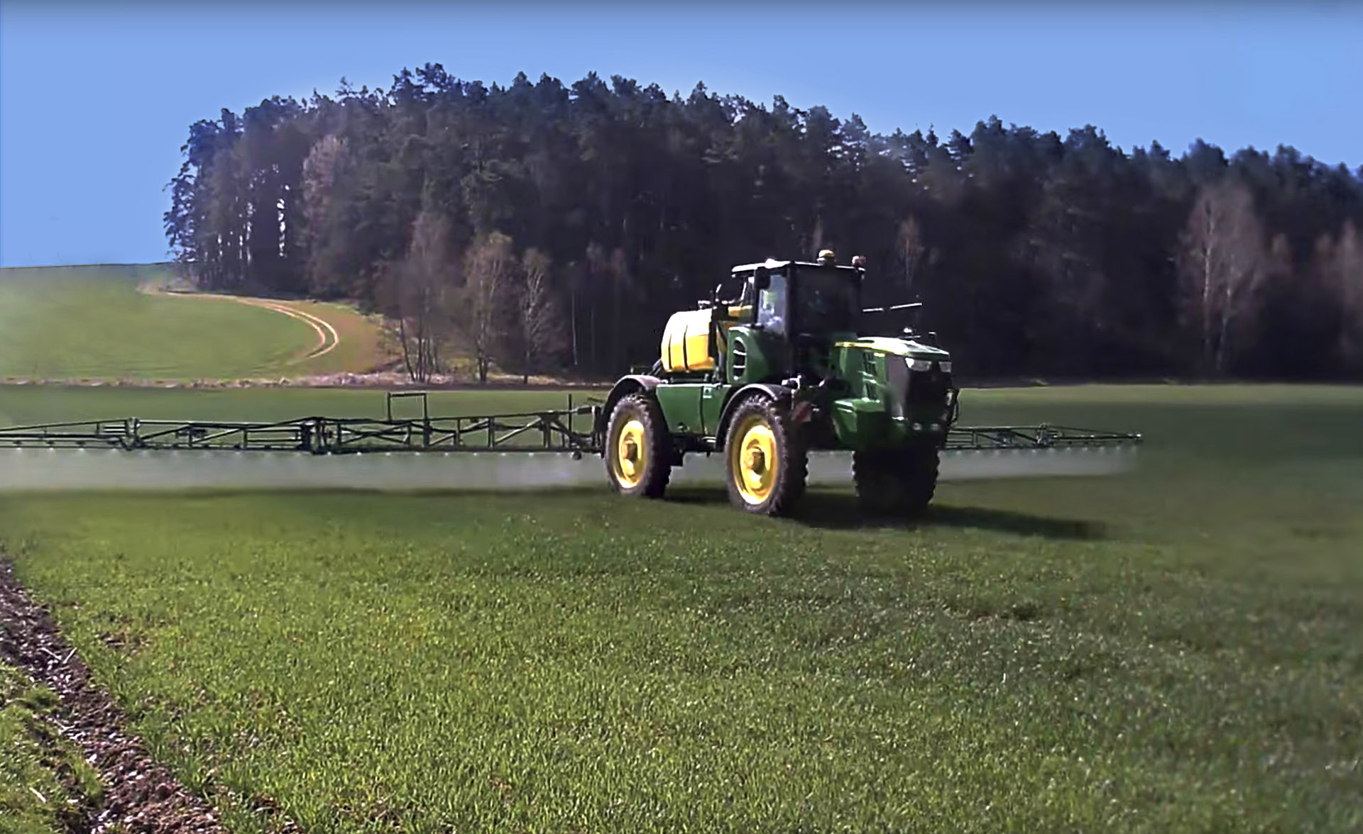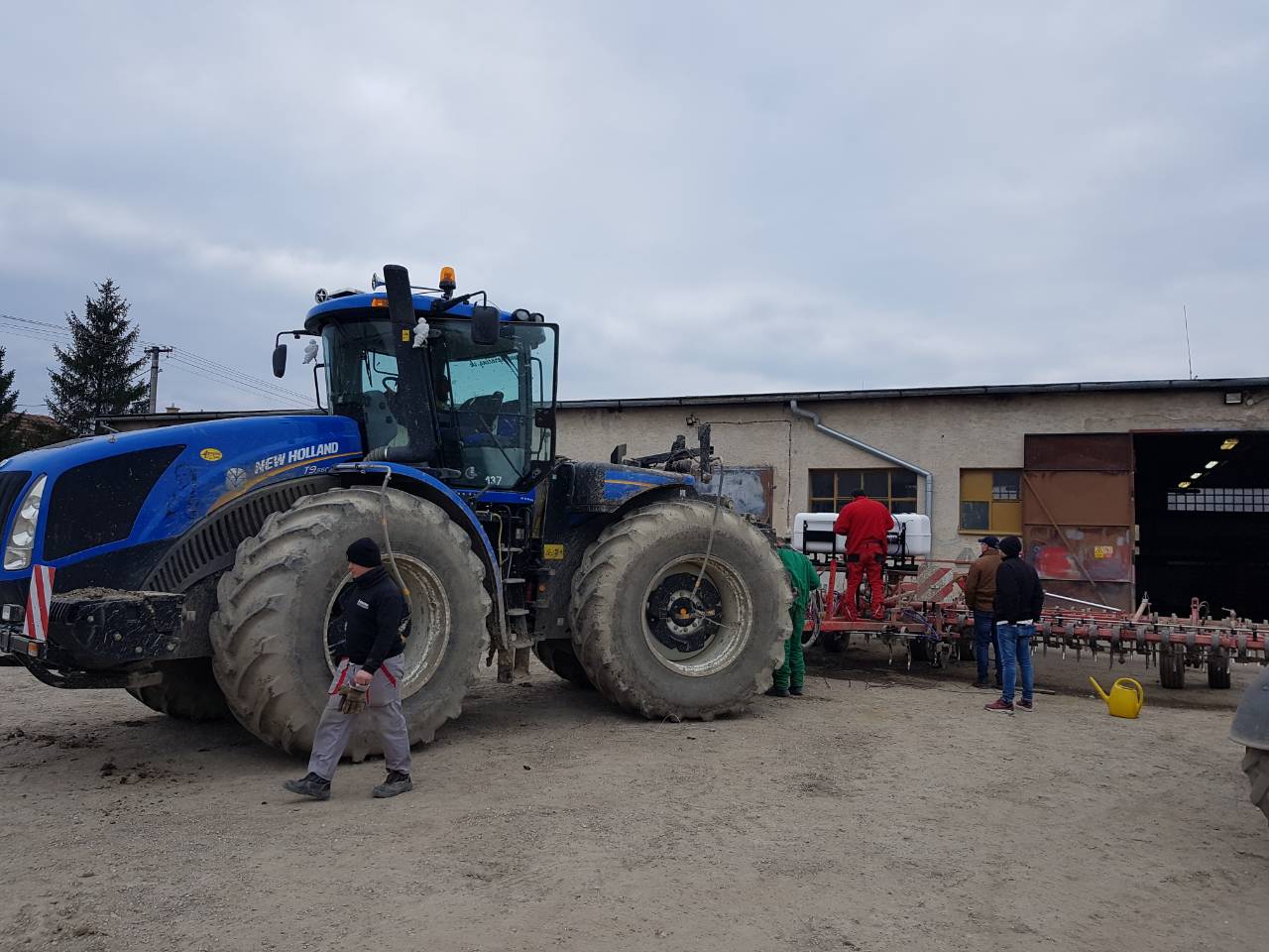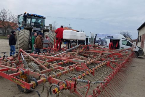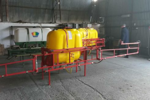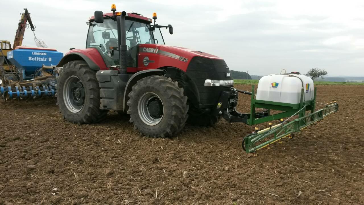 - Postoji i mogućnost primene pomoću aplikatora industrijskih đubriva sa zapreminom reze rvoa ra od 400 i 600 litara sa podesivim radnim zahvatom do 10 m, smeštenim na trotačkastom prednjem produžetku za traktore (nije potreban prednji kardanski izvod budući da je aplikator opremljen sopstvenom jedinicom upravljanja i elektromotorom, koji je priključen na bateriju traktora) U rezervoar aplikatora će se staviti koncentrat AZOTER- a ili isti može da seredi sa vodom u odnosu 1:1.