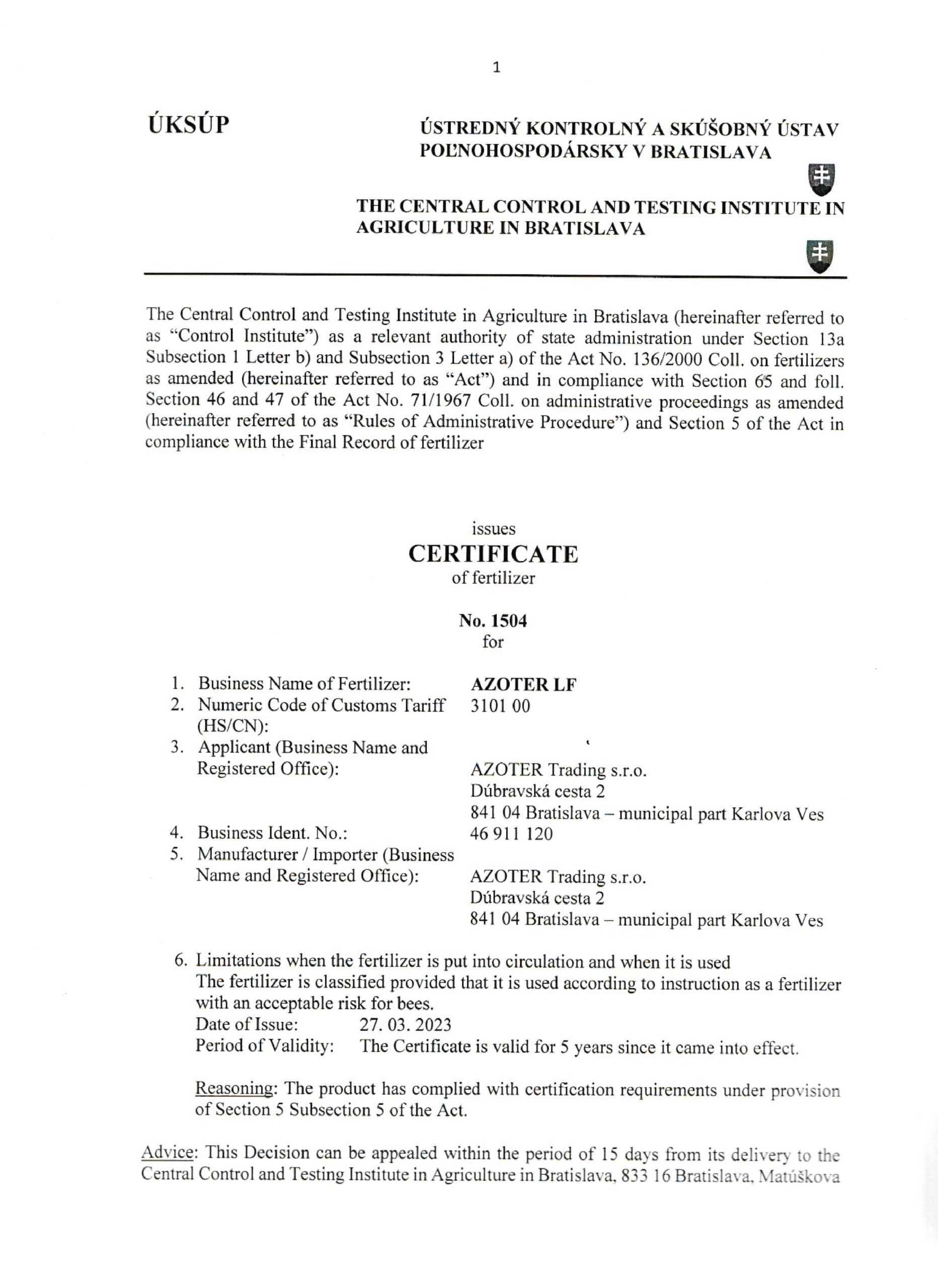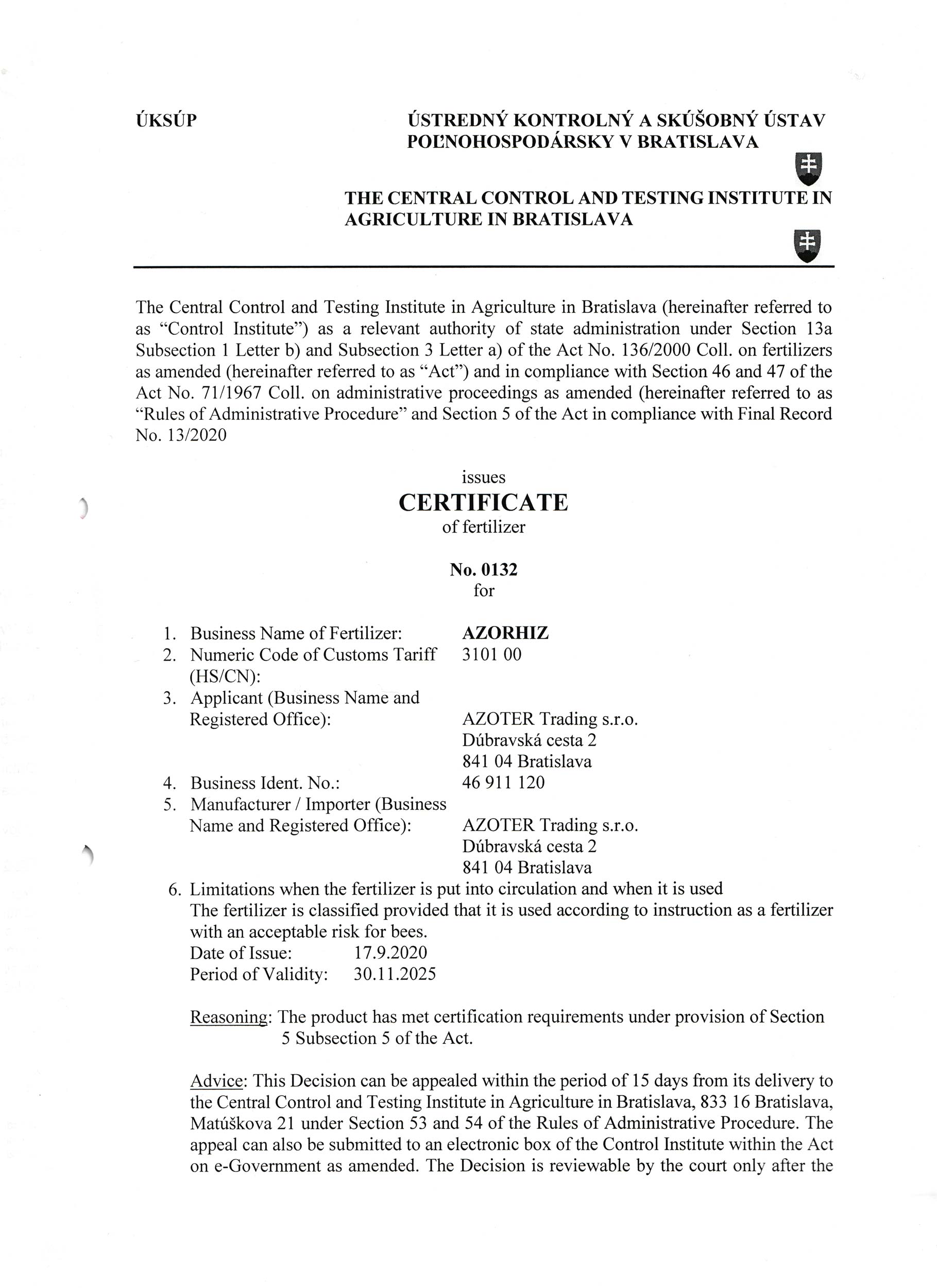 АЗОТЕР АЗОРХИЗ Поволение 1